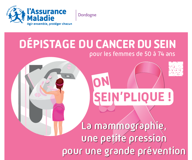 La CPAM de la Dordogne poursuit sa mission d'aller vers prévention auprès des femmes de 50 à 74 ans éligibles au dépistage organisé du cancer du sein. À compter du lundi 23 février, les femmes nouvellement incluses dans le dispositif (entre 50 et 52 ans, sans critères de fragilité) et n'ayant pas fait de dépistage au cours des deux ans, seront contactées par le plateau d'appels pour se voir proposer un RDV de mammographie au plus près de leur domicile, en partenariat avec les cabinets de radiologie du département.